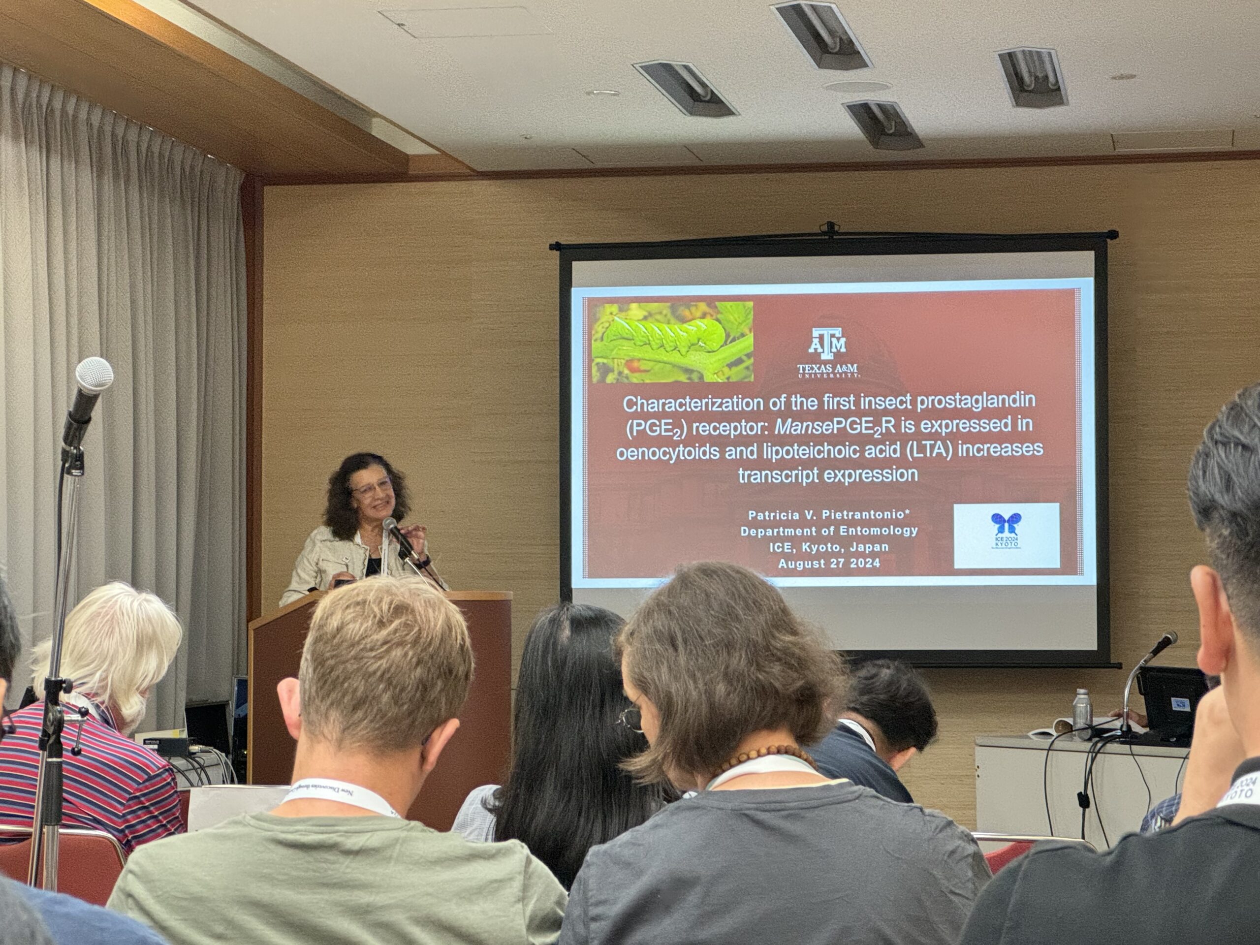 Dr. Pietrantonio presented her invited talk on her laboratory discovery of the first insect prostaglandin receptor at the Symposium 9-1 on Insect Immunity at the International Congress of Entomology in Kyoto, Japan, on August 26, 2024.